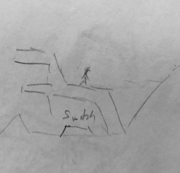 The Battlefield world is the second one in the game, and I’m finding it a lot easier to develop ideas for it. Last year I sketched an idea for the architecture in this world – a simple angled structure – and I’ve found it to be easily adapted to a variety of level structures.